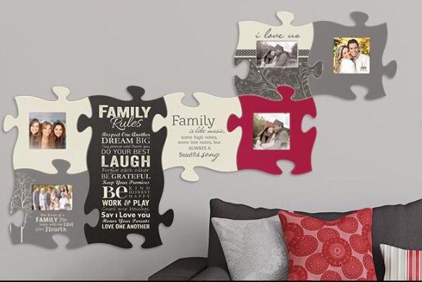 Turns out Christmas Thyme sells more than just Christmas decor. They had some great non holiday items. What caught my eye in particular were puzzle piece picture frames. There were various colours and phrases that you could buy multiple pieces of, put in your own pictures, and hang them up on a wall joining as many pieces together as you wanted. I thought it was such a cool idea and of course this one caught my eye.